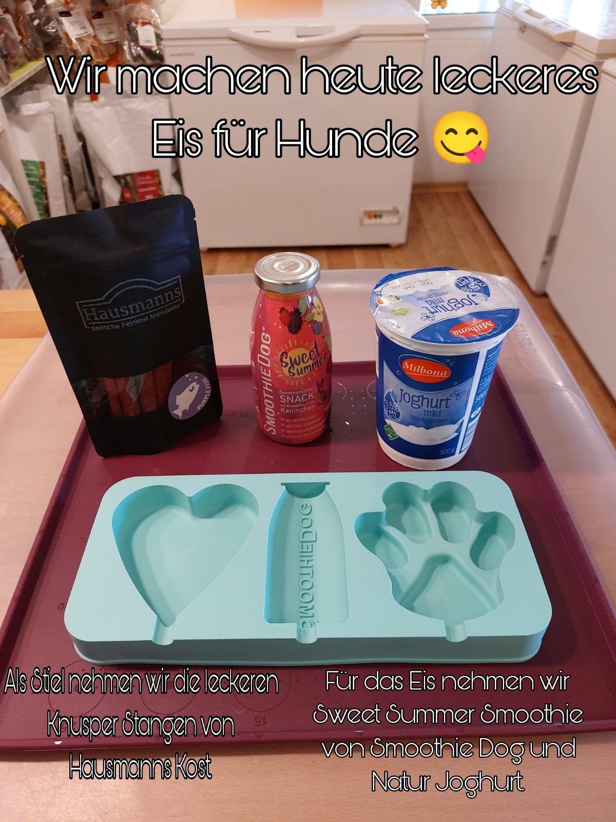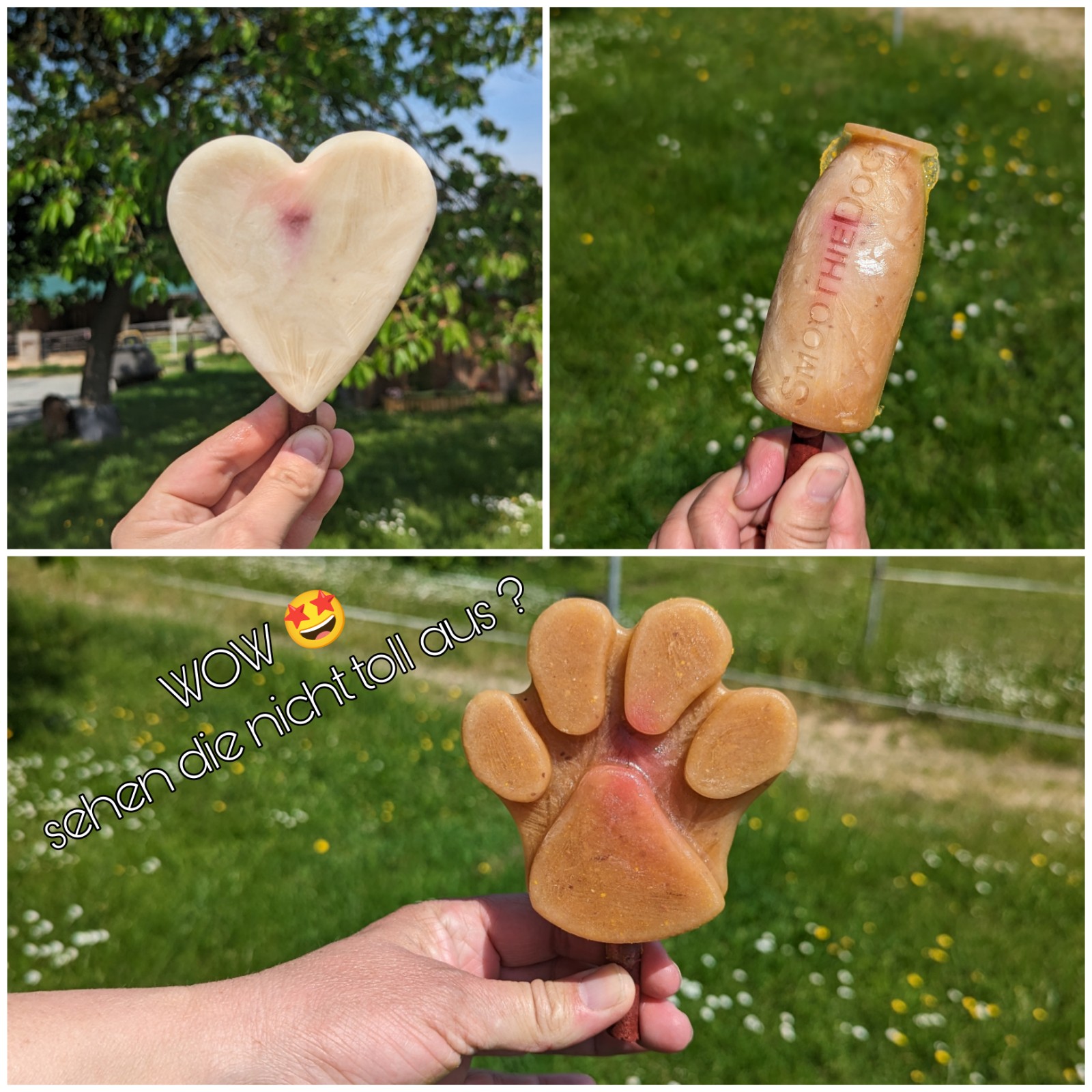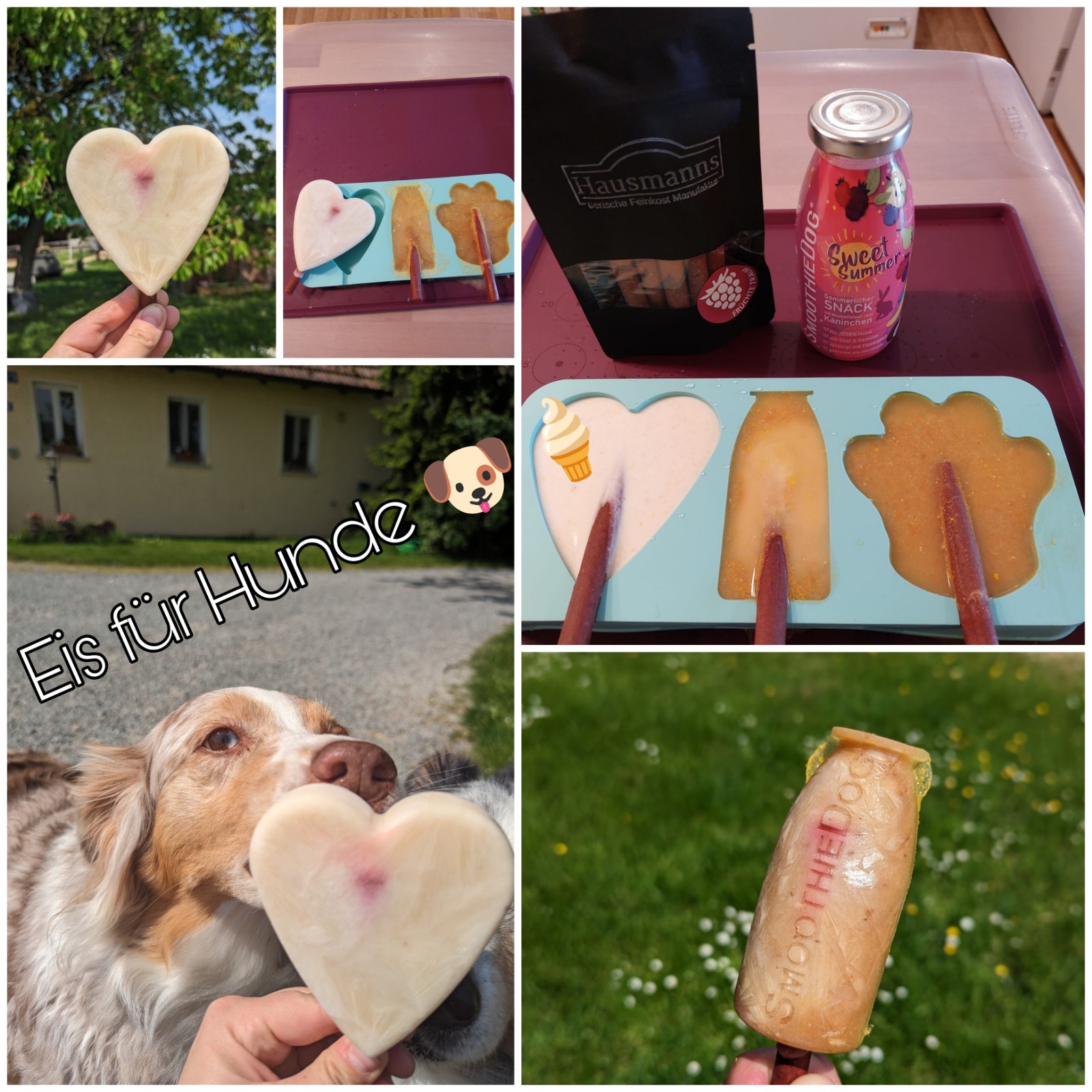 Wir freuen uns, euch unsere neuen Smoothies für Hunde und Katzen vorstellen zu können. In allen Smoothie Flaschen stecken nur leckere und wertvolle Inhaltstoffe. Am besten ihr schaut gleich mal auf unsere Unterseite Smoothie Dog/Cat und informiert euch über die einzelnen Sorten oder ihr schaut beim nächsten Einkauf in der Smoothie Bar vorbei. Meine Aussies sind schon total begeistert.