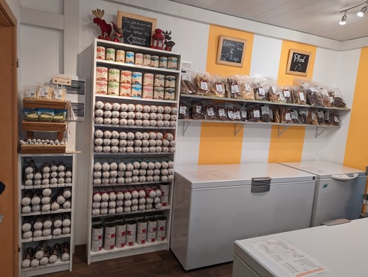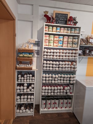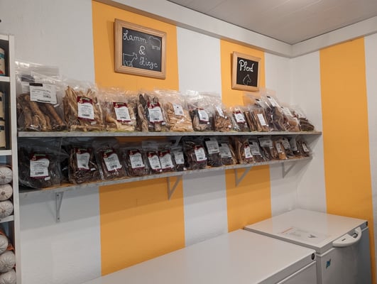 In unseren Hofladen haben wir viel Zeit und Herzblut gesteckt. Mit einem kleinen Verkaufsraum hat alles angefangen. Als die Nachfrage und auch unser Sortiment immer größer wurde, haben wir unseren neuen Laden eingerichtet. Hier können wir auch unsere vielfältige Auswahl gut präsentieren.