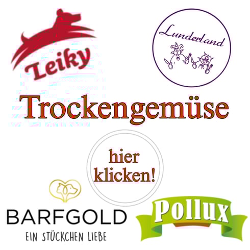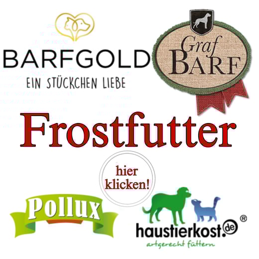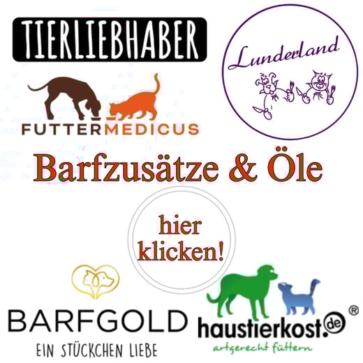 Ebenfalls finden Sie Fleischwürste und Menüdosen für Hunde (Loisachtaler, Fred und Felia, Pollux, Ritzenberger, Schlegel Fleischwürste, Landfleisch) Barfzusätze, Öle, Gemüseflocken und getreidefreie Leckerlis in unserem Futtersortiment.