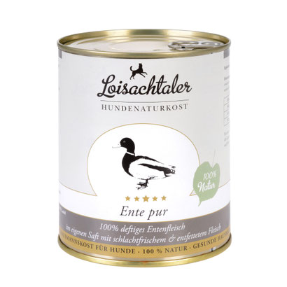 schlachtfrisches Fleisch von der Ente: 100% (Muskelfleisch 45%, Mägen 25%, Herzen 15%, Hälse 15%)